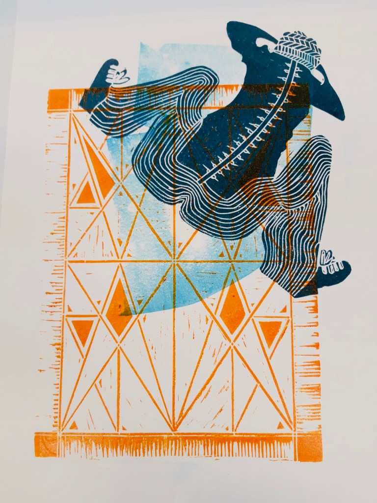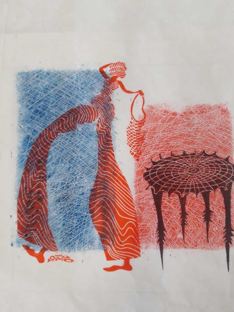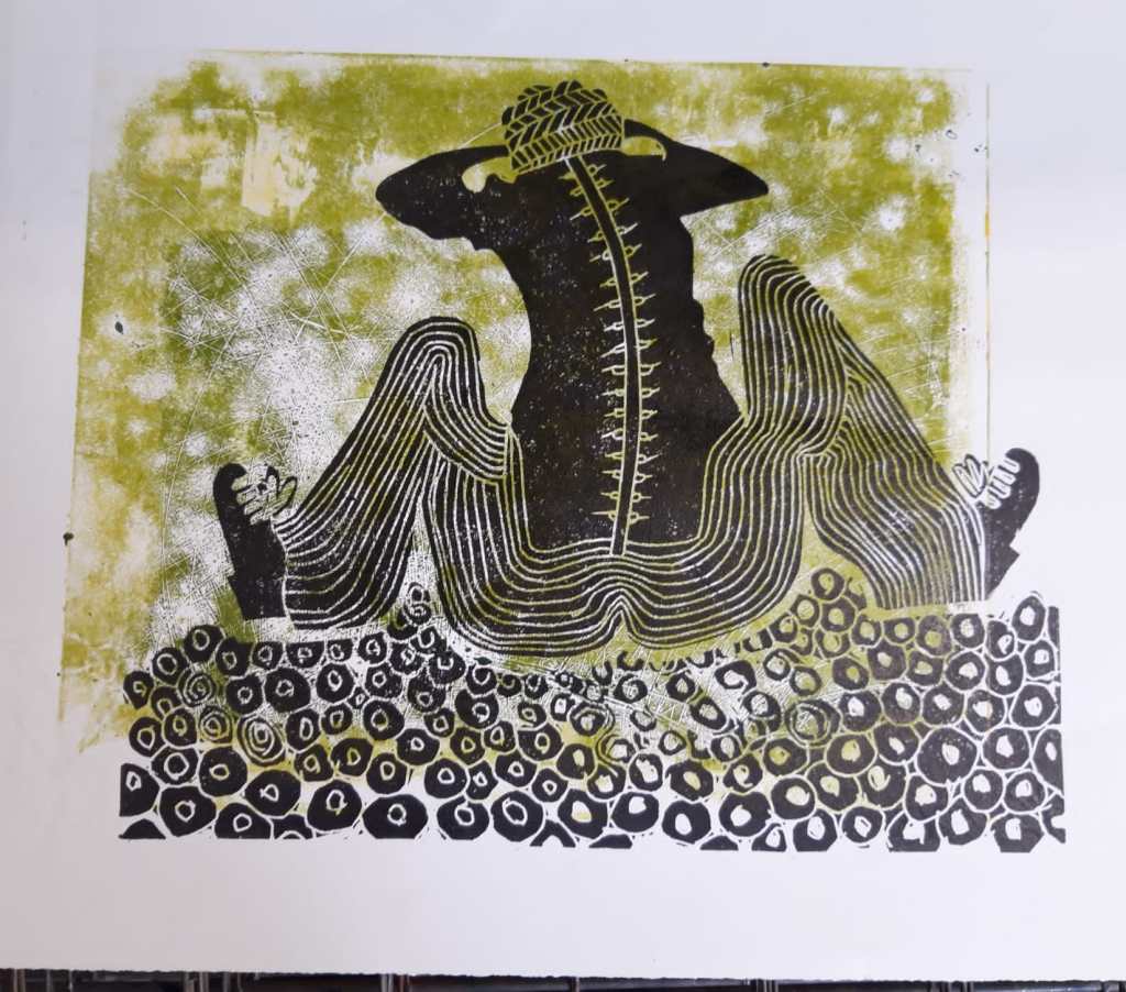 Lino Print oil base ink on Simili Japan Paper 150 mgr 35×70 cm 2021